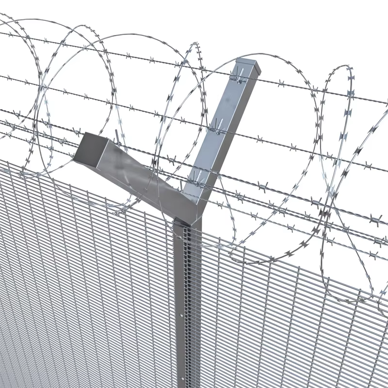 358密紋護(hù)欄網(wǎng)片,又被稱為防攀爬網(wǎng)或反攀爬網(wǎng),其橫絲或豎絲間隙非常小,通常在30毫米以內(nèi)。這使得它能夠有效地防止攀爬和絲鉗的破壞,同時保持了良好的透視性。這種護(hù)欄網(wǎng)片可以與刀片刺絲網(wǎng)協(xié)同使用,進(jìn)一步增強(qiáng)其防護(hù)效果。刀片刺絲網(wǎng)的鋒利邊緣和尖銳刺狀結(jié)構(gòu)使得任何試圖攀爬或破壞的企圖都會受到極大的阻礙。