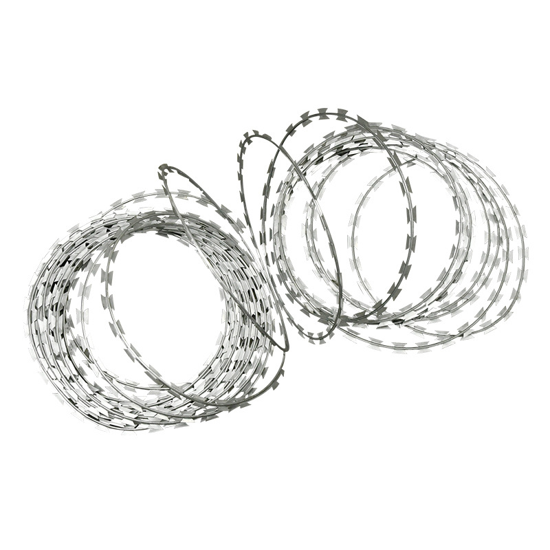 刀片刺繩(razor barbed wire),又稱為刀片刺絲或刀片刺網(wǎng),是一種近年來廣泛應(yīng)用于各類安全防護(hù)領(lǐng)域的新型高強(qiáng)度防護(hù)材料。它由高強(qiáng)度金屬帶材沖壓成鋒利的鋸齒狀刀片,并通過高張力鋼絲串聯(lián)而成,形成一種具有強(qiáng)烈威懾力和高效阻隔功能的防護(hù)結(jié)構(gòu)。與傳統(tǒng)鐵絲網(wǎng)相比,刀片刺繩不僅在物理防御性能上更為優(yōu)越,而且在外形設(shè)計(jì)上也更加美觀大方,因此被越來越多地應(yīng)用在各種安全要求較高的場所。